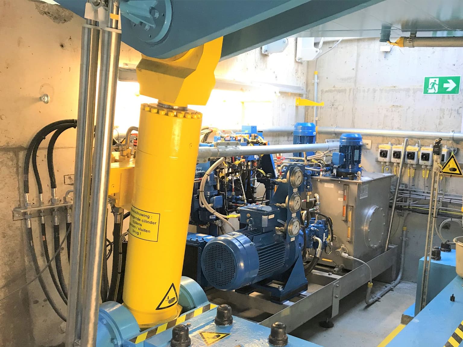 Das Projekt besteht aus einem elektrisch angetriebenen Hydraulikaggregat, einem doppeltwirkenden Zylinder und projektspezifisch konzipierten Steuerblöcken mit allen erforderlichen Funktionen. Die Position des Zylinders wird mit einem SIL3-Längenwegmesssystem überwacht und gesteuert. Die Pumpenaggregate bestehen aus Elektromotoren mit Pumpen im geschlossenen Kreislauf.