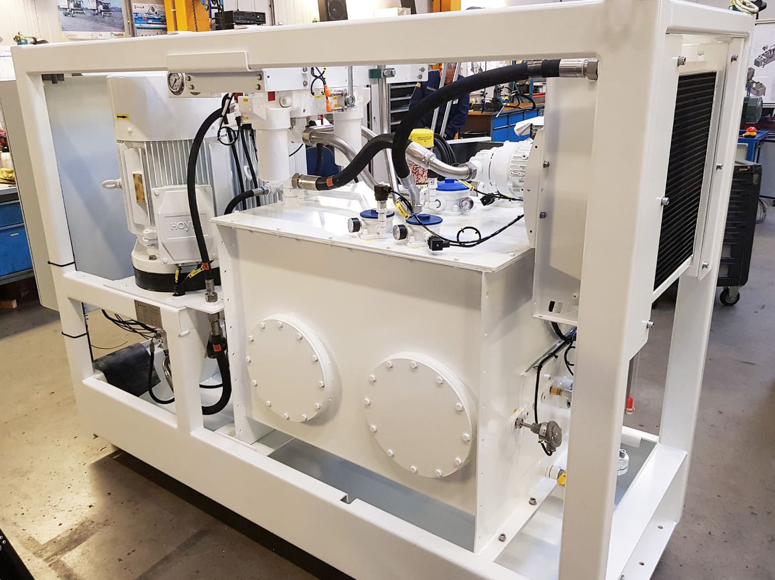 Twee HPU’s (Hydraulic Power Units) die de laadkranen en de cilinders van de tensioners aandrijven, bestaan beide uit twee redundant elektrisch aangedreven Linde HPR open kringloop load sensing pompen, een manifold met drukbegrenzing- en afschakelkleppen, koeler en diverse tankappendages, zoals: retouroliefilters en speciale DNV goedgekeurde peilglazen voor maritieme toepassingen. Deze componenten zijn in een robuust hijsframe gemonteerd, zodat alles handig en veilig te installeren is en volledig beschermd blijft.