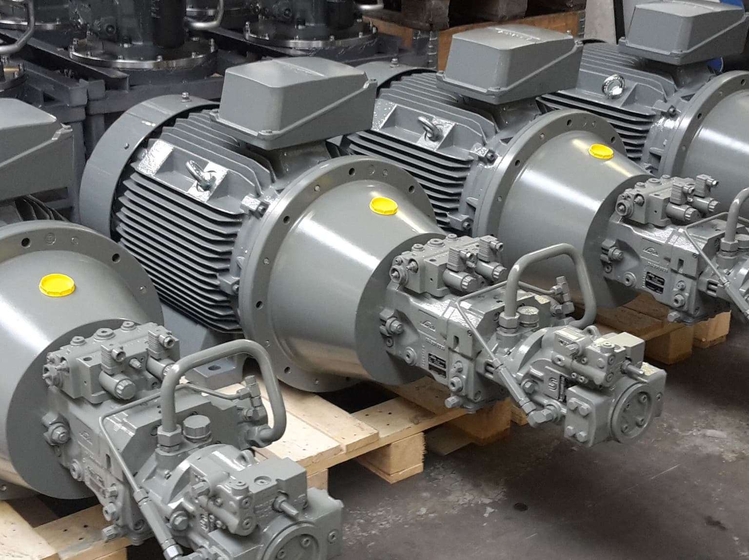 Hydraulisch systeem voor het laden en transporteren van elektriciteitskabels tussen kabelfabrieken op de wal en kabeltrommels op bijvoorbeeld kabellegschepen. De pompset bestaat uit een Linde gesloten systeem die de hydromotoren van de wielparen aandrijft waar de elektrische kabel doorheen loopt.